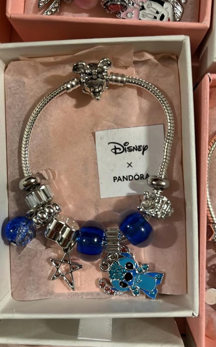 Charm Protagonista: Un espectacular dije colgante de Stitch (Lilo & Stitch) esmaltado en azul y decorado con cristales brillantes, que añade movimiento y personalidad al conjunto.